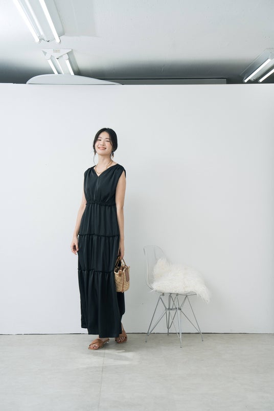 オケージョン専用だと出番が限られてしまいますが、こちらのドレスはシンプルなデザインなので、着こなし次第でデイリーからリゾートまで、幅広いシーンでご着用が可能。