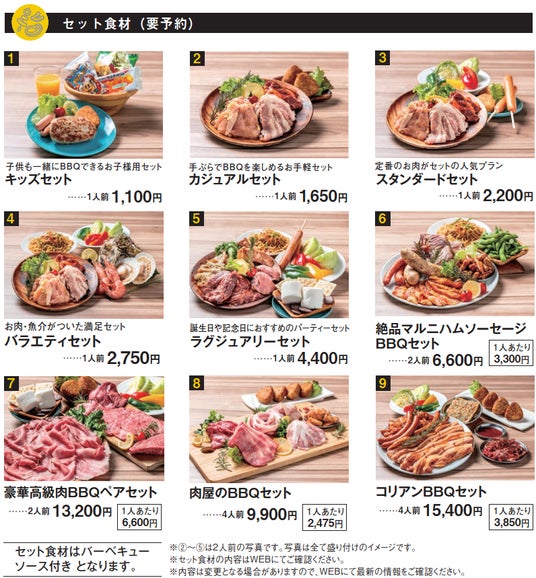 もちろん手軽で便利な、食材予約による「手ブラBBQ」もおススメ!!