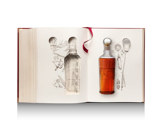 フランスのラリック社(LALIQUE)によるクリスタルデキャンタには、アンドリュー・デビッドソンが描いたアレクサンダーの姿が刻み込まれ、さらにそのデキャンタが、彼の人生を描いた壮大なスケールの特注本の中に包まれるようにパッケージされています。木版画と伝統的な印刷技術で知られ、英国ロイヤルメールの切手やウィンブルドンのセンターコートのガラス扉のデザインを手掛けたこともあるイギリスを代表する著名なアーティストであるアンドリュー・デビッドソン。彼がこの特注本に描いた600ページにも及ぶ美しいイラストは圧巻です。