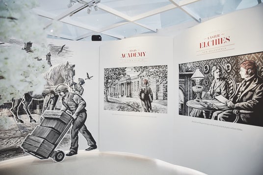 『TALES OF THE MACALLAN VOLUME II』は、ザ・マッカランの創設者であるアレクサンダー・リードへのオマージュとなっており、会場では、教師、農家、そしてウイスキーづくりへと変容を遂げた彼の人生の重要なシーンが描かれたアンドリュー・デビッドソンによる木版画をダイナミックに展示し、ウイスキーづくりが極められるまでの道のりを表現しました。