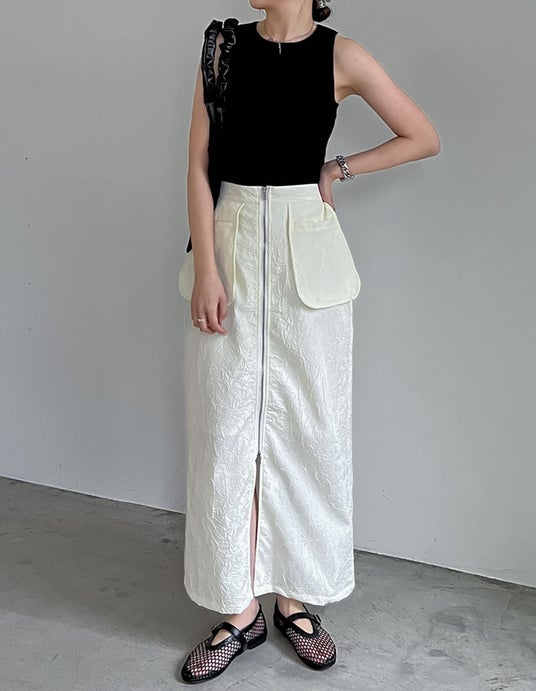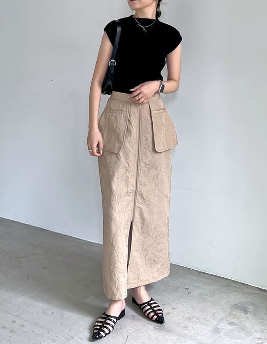 フロントのジップデザインは洗練された大人モードな雰囲気を後押ししてくれます。