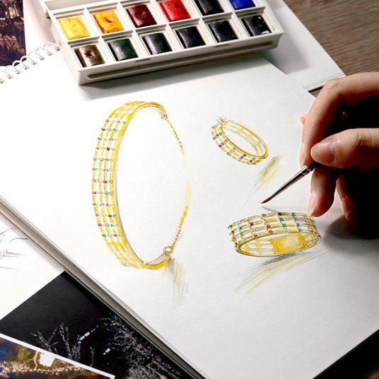 宝石には、世界三大希少石のひとつであるパライバトルマリンや、ダイヤモンドに匹敵する輝きを放つデマントイドガーネット、近年人気を集めるイエローダイヤモンドなど、世界各地から買い付け、厳選したカラーパレットを使用。カラーストーンは一般的に小さいほど色が淡くなる特性を持ちますが、一点ずつ丹念に品質や色味を確かめ、鮮やかに発色するものだけを使用しています。