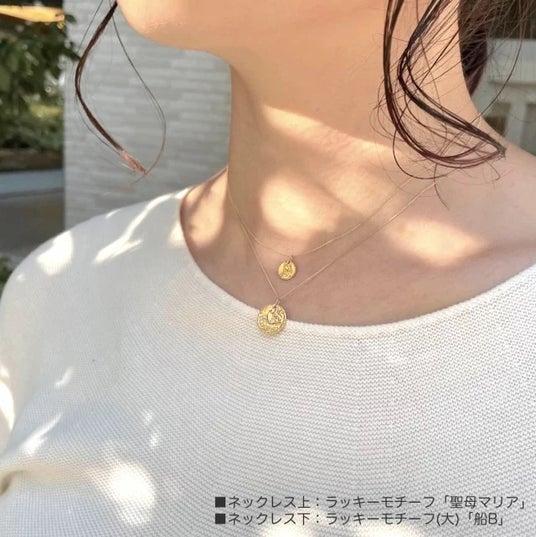 ネックレスは、チャーム(ペンダントトップ)とチェーン、それぞれ別々でご購入頂けます。直径8.5mmと、直径12mmの2サイズからお選び頂けます。