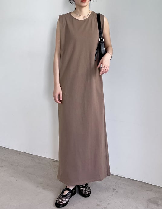 シンプルかつさまになるコットンワンピ