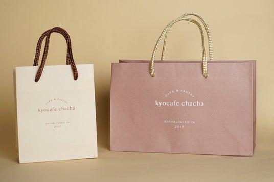 手提げ袋はベージュ(左)とピンクブラウン(右)の2種類。