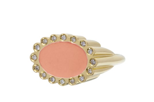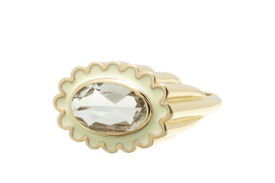 マルガリータ コレクションは、アールデコからインスピレーションを受けたデザインと、そして鮮やかな色のコンビネーションが可憐で時を超えた永遠の魅力を放ちます。花をモチーフにしたマルガリータのリングとピアスは、イエローゴールドを基調にホワイト、イエロー、ピンクのエナメルや、オーバルカットのシトリンやグリーンアメジストを組み合わせたアイテムや、ダイヤモンドやカラーストーンを配したリングなど、個性に溢れるコ レクションが揃います。