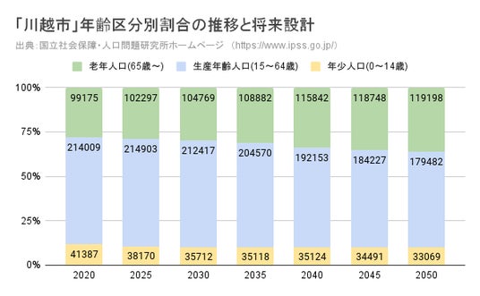 所沢メモリアルパークが位置する川越市も例外ではなく、緩やかではあるが確実に少子高齢化が進んでおり、2050年には3人に1人が高齢者となります。