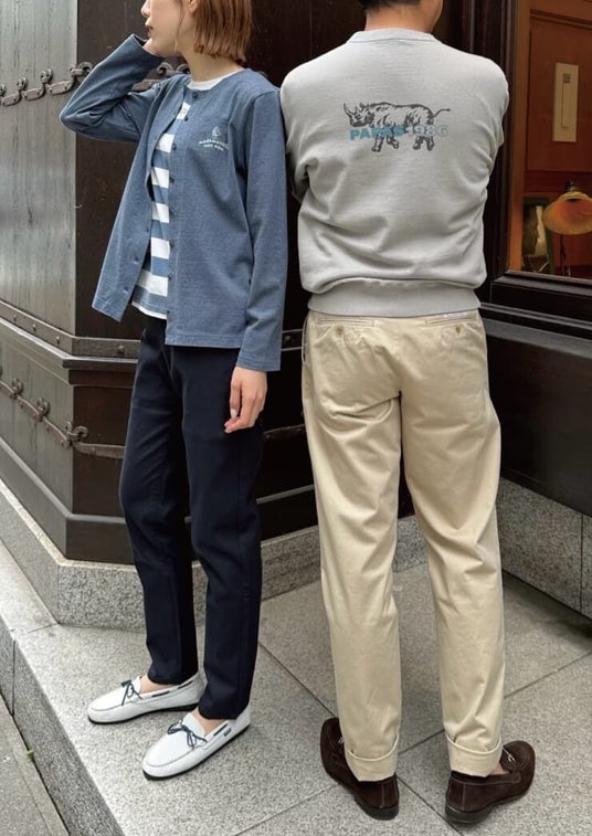 パパスからはブランドアイコンであるサイを刺繡とプリントであしらったスウェット。薄手のラフィ裏毛(超長綿の落ち綿)生地を使い、着心地良く仕立てている。