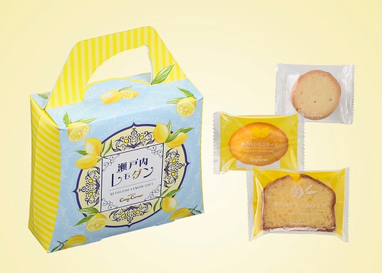 コンセプトは懐かしのレモンスイーツをモダン(現代風)にアレンジした焼菓子。まろやかな酸味を特長とする瀬戸内レモンの、果汁・ピール・ペーストを使用。さまざまな食感でレモンのおいしさが楽しめるよう、しっとり味わえる「瀬戸内レモンケーキ」、ふんわり焼き上げた「瀬戸内レモンパウンド」、そして、さっくり食感のクッキーを詰め合わせました。