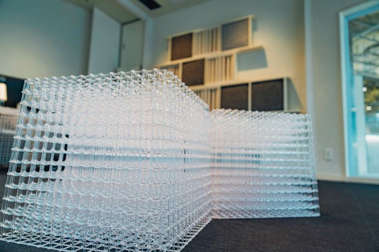 床面はダークなジーンズ素材で経年を楽しめるように、壁面は塗りっぱなしのような仕上げにして傷がついても目立たない仕様に、収録に使用する机や椅子などの家具は株式会社MagnaRectaと提携し、PET樹脂を独自の3Dプリント技術を使って構造物にするソリューション、「130(ワンサーティー)」で製作しています。130の持つ「修理可能」「再素材化可能」という特徴によって、「壊れたから廃棄して買い替える」というプロダクトサイクルではない新たな価値観を、このスタジオから提示していきます。