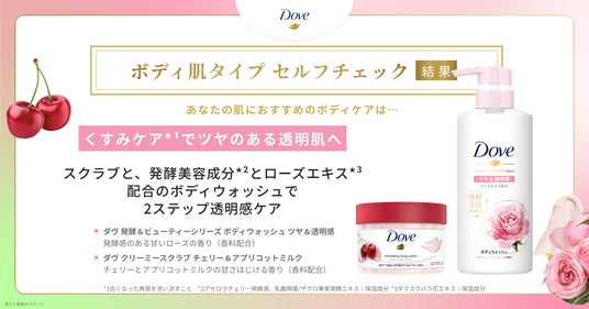 ユニリーバ・ジャパン・カスタマーマーケティング株式会社(本社:東京都目黒区、代表取締役 社長:ジョイ・ホー)が展開するパーソナルビューティーケアブランド「ダヴ」は、夏に向けてなりたい肌を叶えて2ステップ角質ケアで透明肌に導く「#本気透明肌計画第3弾 夏までに目指せ理想の透明肌!ボディ肌タイプセルフチェック キャンペーン」を2024年4月15日(月) より開始いたします。キャンペーン期間中、ダヴの公式Xをフォローし、セルフチェックの結果をキャンペーンハッシュタグ「#本気透明肌計画第3弾」をつけてポストいただいた方の中から抽選で50名様に、ダヴの「発酵&ビューティーシリーズ」のボディウォッシュ、クリーミースクラブのセットをプレゼントします。
