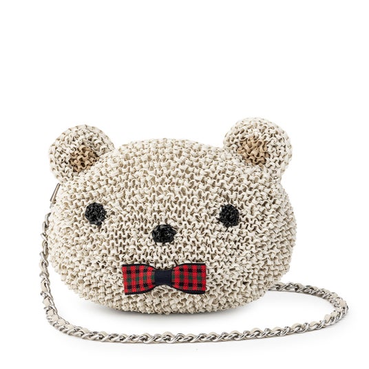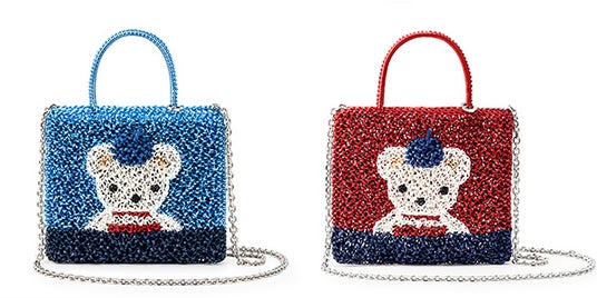 ファミリアのアイコニックなクマちゃんのデザインを落とし込んだショルダーバッグ。取り外し可能なファミリアチェックのリボンピンもポイントです。手編みのワイヤーバッグだからこそ、アクセサリー感覚で大人の女性がおしゃれに持てるアニマルモチーフに仕上がりました。一目でわかるモチーフながら、合わせやすい配色なので、いつものコーディネートの新鮮なアクセントになってくれます。