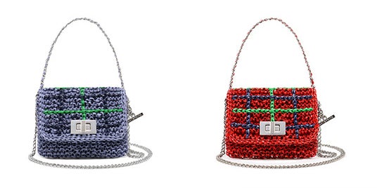 ワイヤーコードならではの適度な伸縮があるので、二つ折り財布・スマートフォン・リップスティックなどの必需品がぴったり収まるサイズです。取り外しのできる付属のチェーンはアレンジができ、ショルダー、斜めがけの3WAYでお使いいただけます。