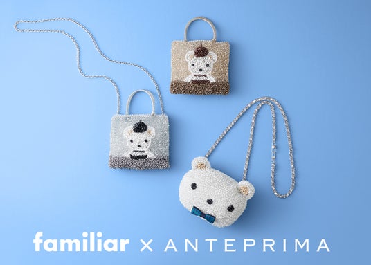 「familiar × ANTEPRIMA」初コラボレーション。4月24日(水)より阪急百貨店公式オンラインストア、5月1日(水)よりANTEPRIMAオンラインストアで受注販売を開始。