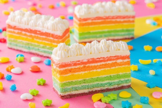 6色のレインボーカラーで彩る、オーガニックの卵をたっぷりと使用したケーキをお楽しみください。