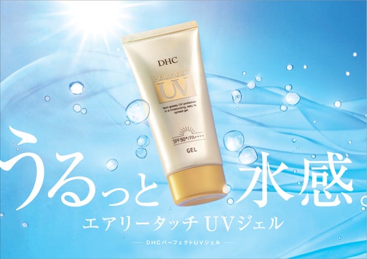 「DHC パーフェクトUVジェル」は、みずみずしく軽いテクスチャーで、まるでスキンケアのような快適な使い心地を実現しました。同時に、乾燥ダメージからうるおいを守りながら、SPF50+PA++++でシミを予防※。クリアヴェール効果により、透明感のあるハリつや肌を演出します。日常のルーティンに取り入れやすい、新しいUVケア習慣を是非お試しください。