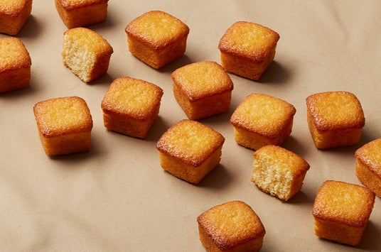 新しいバターミルクケーキは、キューブ形を採用しました。この形状にすることで、可愛らしさと親しみやすさを表現しました。また、キューブ型により、ケーキの各面が均等に焼けることで、ふんわりとした食感に仕上げました。