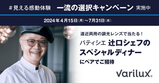 “一流の選択”キャンペーンでは、キャンペーン対象店舗にてトランジションズ(調光レンズつき)バリラックス遠近両用レンズをご購入いただくと抽選で世界最大のチョコレートの祭典「サロン・デュ・ショコラ・パリ」で7年連続の最高評価を獲得したパティシエ・ショコラティエの辻口博啓シェフによる完全オリジナルディナーコースが当たります。このディナーコースは旬の野菜や食材を使用し、バリラックスをモチーフにして作成した完全オリジナルコースです。辻口シェフが考案した、ここでしか味わえないプレミアムな体験をお楽しみください。辻口博啓シェフはバリラックスのご愛用者としてスペシャルウェブコンテンツ”一流の選択“にご出演いただいております。