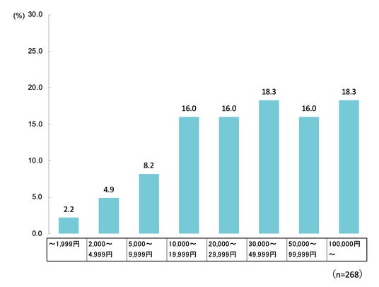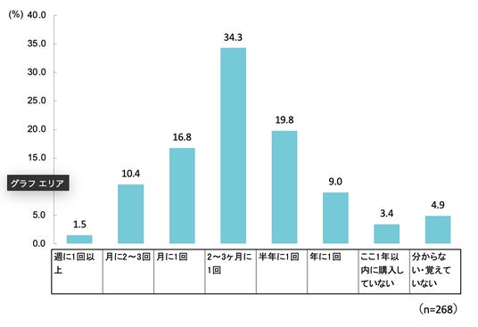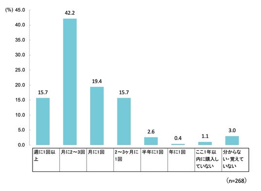 さらに、当社が独自で行った調査(※2)では、アバター関連商品への年間支出額が、全体で「30,000~49,999円」と「100,000円~」が18.3%と最も高く、アバター向け衣装の購入頻度は「月に2~3回」が42.2%と最も高い結果となりました。普段のリアルの洋服の購入頻度は「2~3ヶ月に1回」が34.3%と最も高いことから、リアルの洋服購入頻度より、メタバース向けアバター衣装の購入頻度の方が高いことが伺えました。