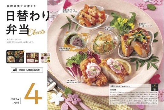 4月日替わり弁当チラシはたらく女性を応援する配達弁当「デリナチュラ」はたらく女性を応援する配達弁当屋さんです。青森福祉バンク株式会社が運営しております。