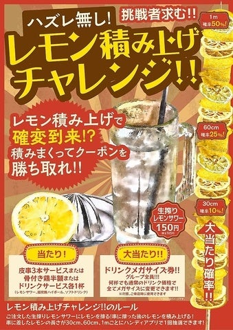ご来店頂く多くの方にご好評いただいているレモン積み上げチャレンジ。あなたの挑戦もお待ちしております。