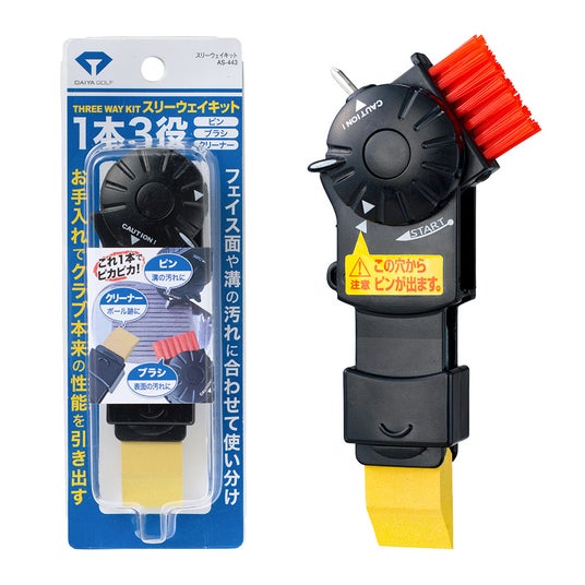 ゴルフクラブを大切にきれいに扱いたいゴルファーに人気の『スリーウェイキット』は、1本でゴルフクラブの手入れができるピン、ブラシ、クリーナーの性能を持ったゴルフメンテナンスグッズです。2004年7月に発売以降、20万個以上※を販売し、アマチュアゴルファーのゴルフクラブの手入れやセルフプレーをする時はもちろん、コンパクトで持ち運びができるので、プロキャディやジュニアゴルファーからも「気になったときにキャディバッグからすぐに取り出せて使える」「練習場でボールを打った時についた跡が残ってしまったときに気軽に使用できる」と様々なゴルファーに愛用されています。