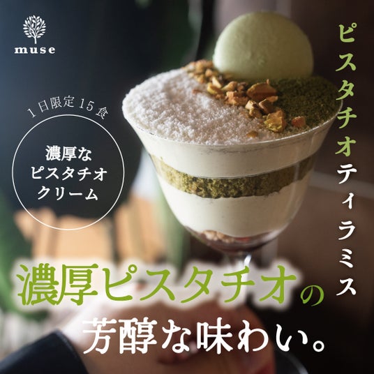 シーシャカフェ&バーmuseを運営する・株式会社muse(本社:東京都渋谷区、代表:堀 賢太郎)は、本日より、季節限定スイーツ「ピスタチオティラミス」をリリースいたしました。