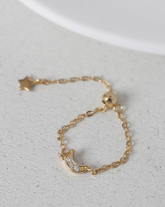 【S925/18K】ムーン×スターモチーフチェーンリング/¥3,690 (税込)