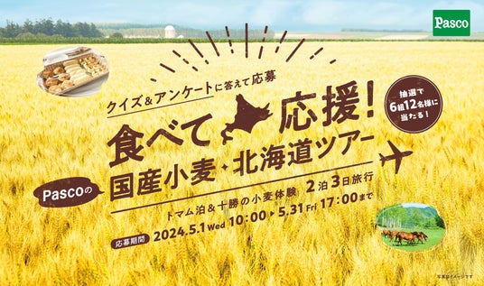 敷島製パン株式会社(Pasco)は「食べて応援!Pascoの国産小麦・北海道ツアー」キャンペーンを、2024年5月1日(水)~5月31日(金)の31日間実施します。