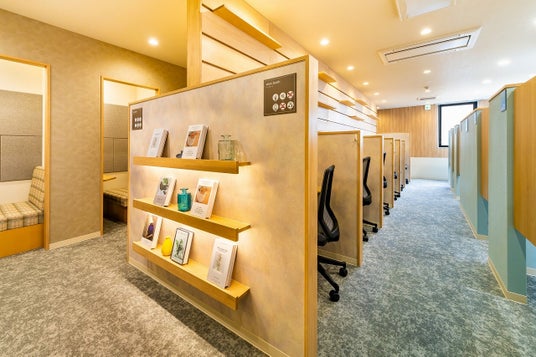 2階は食事・WEB会議ができるカフェブース 、5階は仕切り付きの席で集中できるワークブースとなりフロアごとにゾーニングされた空間は 、テレワークはもちろん仕事終わりの資格取得勉強などリスキリング時間もシームレスに確保できます。またデスク幅が広く、パソコンや資料を広げながらの作業も可能です。モニター付きの席、ソファ席など座席の種類も豊富で、用途や好みに合わせてお好きな場所を選べます。