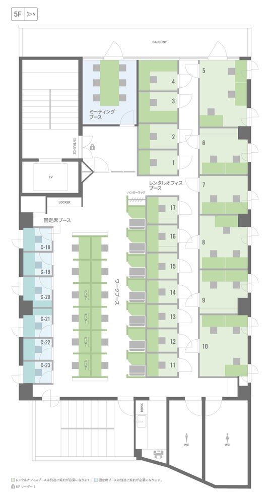 設備 :Wi-Fi、フリードリンク、無料プリンター、ロッカー、ポスト、登記可能、WEB会議専用個室、会議室
