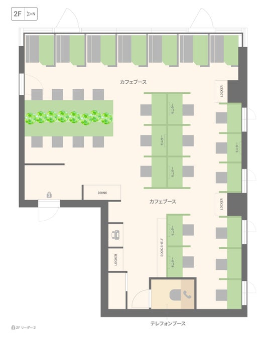 特徴2. WEB会議専用個室を2階コワーキングスペースに新設