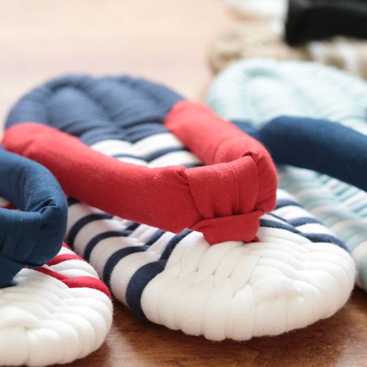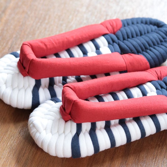 布ぞうりは、布で編み上げた室内履き。