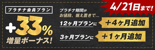 機能満載なプラチナプランがお値段据え置きで期間延長となり、実質33%お得です!