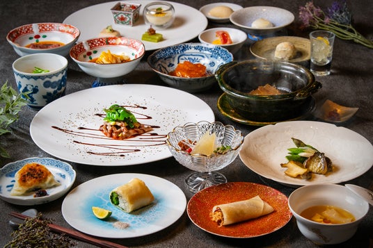 旬の食材であるオマール海老や最高級部位の国産牛ヒレをはじめ、香港式チャーシューの蜜汁烤叉焼や、皮蛋豆腐、春巻皮、もちもちとした食感が特徴の蓮根餅など、細部までこだわり抜いた20品以上のメニューを、少量多皿のコース料理にてお召し上がりいただけます。