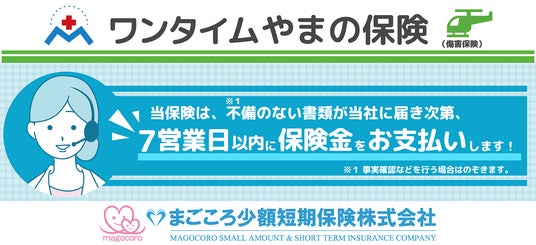 そのような社会情勢の中で、お客様に対して当社が何をできるかを考え、このたび、当社は、不備のない状態で書類を受領した場合、原則として7営業日以内に「ワンタイムやまの保険」に関する保険金を支払えるように社内の支払事務体制を整備しました。