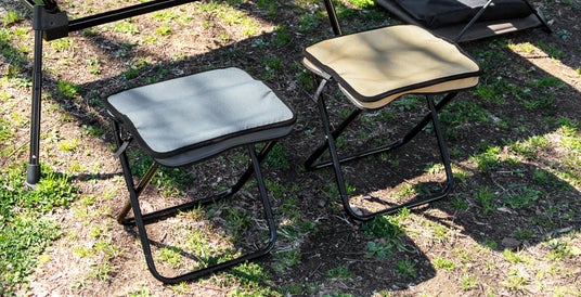 カラーはグレーとフィールドベージュの2色。ロゴなどがないシンプルな座面は、屋外で悪目立ちしないカラーリングに仕上げています。屋外の風景撮影などでも周囲の自然や雰囲気にマッチします。
