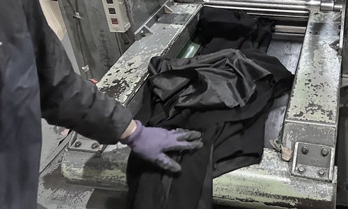 まず第1回目として、廃棄予定だった600kg(約550着)の当社ブラックフォーマルを回収し、廃棄衣料繊維90%の「PANECO(R)」にしました。