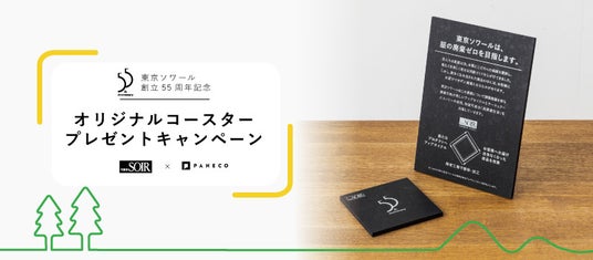 東京ソワール創立55周年記念 ノベルティ配布キャンペーン概要東京ソワール商品を総額3,300円(税込)以上お買い上げのお客様に、当社の廃棄衣料(ブラックフォーマル)で作成したPANECO(R)のオリジナルコースターをプレゼント。