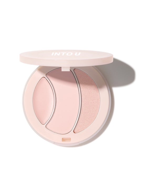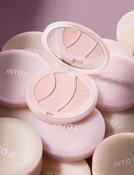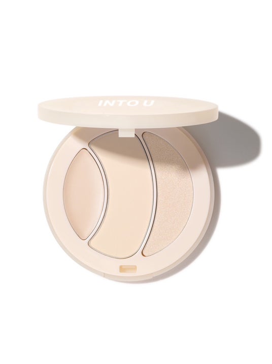 平坦で凹凸を表現しにくかった東洋人の顔を立体的に魅せるため、INTO U が研究を続けてきた数々の技法とフォーミュラを詰め込んだ渾身のハイライトパレットが誕生しました。指でクリームを馴染ませ、ブラシでパウダーをのせていき、ラメを重ねていく…。たった3ステップで、簡単に、ナチュラルな煌めき肌をいつでも自分のものに。忙しい朝の支度時間にも、スイスイっと立体的な美光肌を作ることができます。