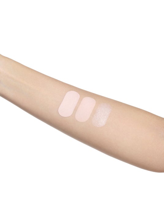 クリームは汗、皮脂、摩擦の3つの問題にしっかり対応し、化粧崩れしにくくしてくれるのが嬉しいポイント。オリーブ油由来のスクワラン配合で、高密着、保湿力抜群のパウダーでさらにもちもちの素肌感に引き上げてくれます。また、最後にのせるラメには真珠岩パーライト配合。高水分保有のため、透明感と瑞々しさを与えてくれます。