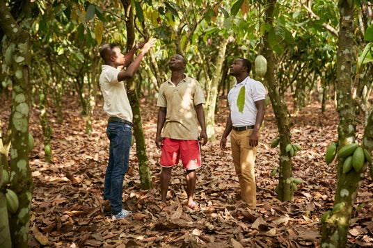 カカオ産業が抱える課題 チョコレートの原料であるカカオは、赤道近くの高温多湿な地域で栽培されます。世界の カカオ生産の約7割を占める西アフリカ地域では、農薬の使用や森の伐採などによる生態系や環境の破壊や、地域の子どもたちの児童労働や農家の労働・生活環境が改善しないなど、様々な課題を抱えています。このままでは持続可能なカカオの生産が難しくなる可能性も示唆されています。