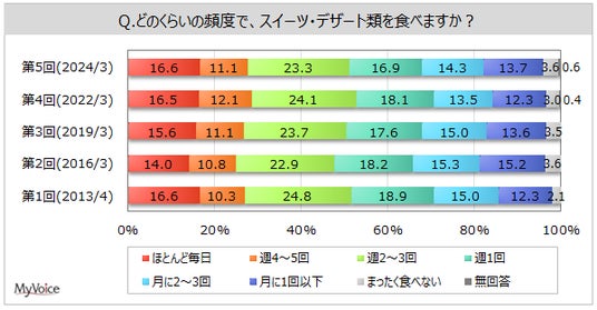 マイボイスコム株式会社(東京都千代田区、代表取締役社長:高井和久)は、5回目となる『スイーツ・デザート類』に関するインターネット調査を2024年3月1日~5日に実施しました。