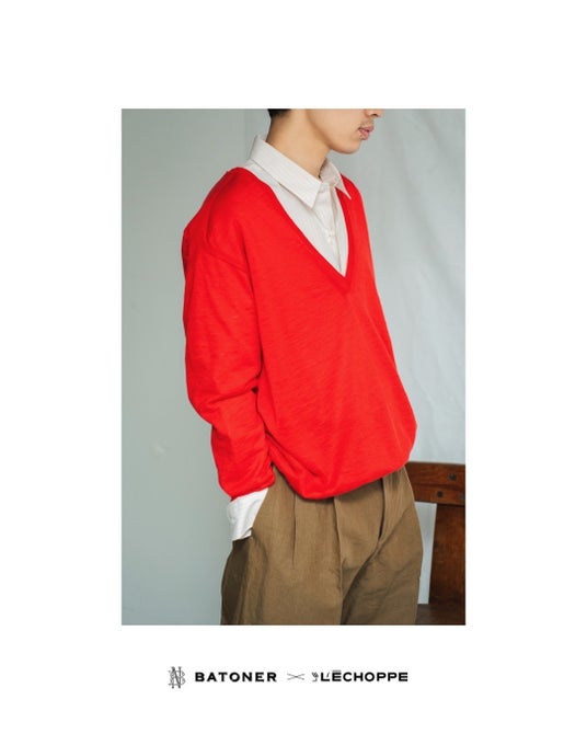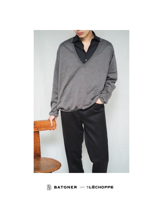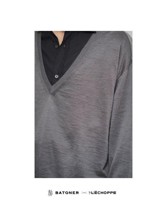 レショップがここ数シーズン継続的に展開している深いVネックのニット。