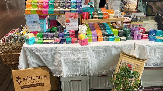 今回の出展では、プラスチックフリーの固形シャンプー&コンディショナー バーや、バンブー歯ブラシ、繰り返し使える米ぬかカイロ、リサイクル素材のバッグなど、毎日の暮らしに取り入れやすいエシカル・サステナブルなアイテムを販売します。