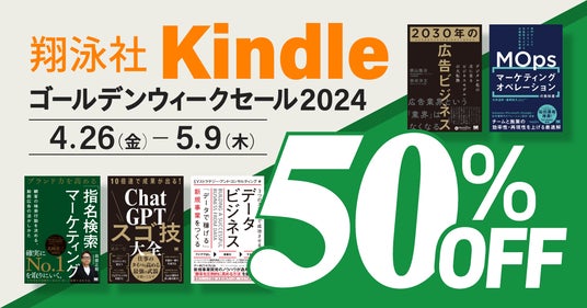 4月26日(金)から5月9日(木)のセールでは、仕事のタイパを高める最強の武器を使いこなすための1冊『10倍速で成果が出る!ChatGPTスゴ技大全』、小規模の予算、少ない時間で指名検索の獲得を可能にする『ブランド力を高める「指名検索」マーケティング 顧客の検索行動を決める、動画広告の活かしかた』など、ビジネス書を中心にしたラインナップを取り揃えています。