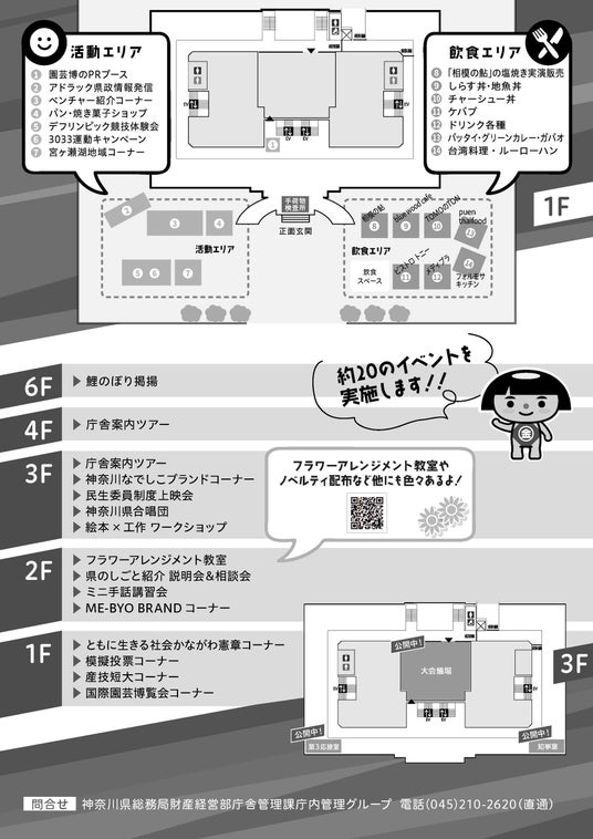 「キングの塔」の愛称で親しまれている神奈川県庁の本庁舎を5年ぶりに一般公開します。令和元年12月27日付けで国の重要文化財に指定されてから初めての公開で、本庁舎内の知事室、旧貴賓室や議場などをご覧いただけます。庁舎内外では2027年国際園芸博覧会のPRブースの展示や東京2025デフリンピック競技のミニ体験会などを実施し、キッチンカーも出店します。当日は、県庁周辺で、横浜開港記念みなと祭第72回ザよこはまパレード(国際仮装行列)も開催されますので、この機会にぜひ県庁にお越しください。