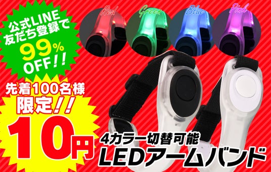 夜間のランニングやウォーキング、サイクリング交通安全対策LEDアームバンドが99%OFF!!