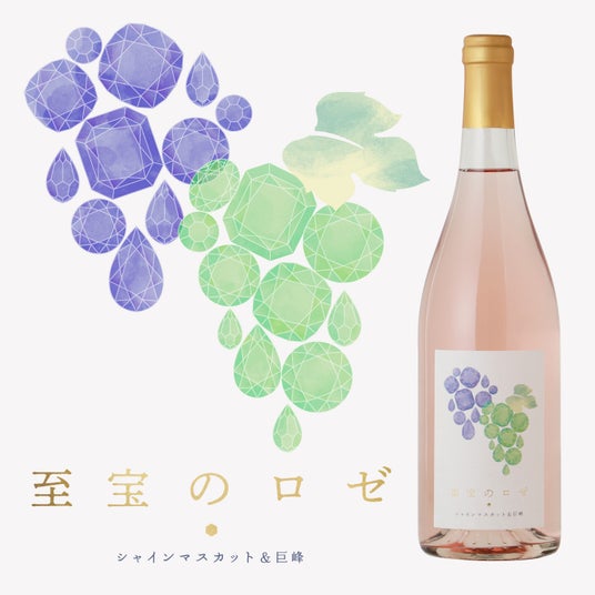 「至宝のロゼ -シャインマスカット&巨峰‐」は、マスカットの女王「シャインマスカット」とぶどうの王様「巨峰」で造る、まるで宝石のように特別感のあるロゼワインです。2つの品種を掛け合わせた至高の飲み心地をお楽しみいただけます。
