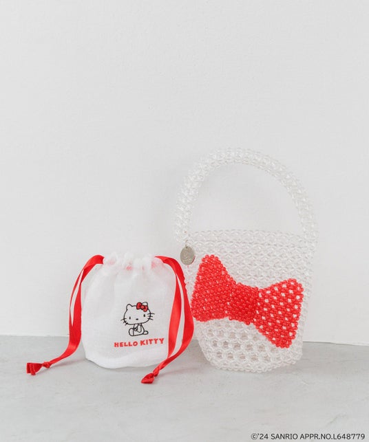 ハローキティのトレードマークでもあるリボンを大きくフロントに付けたビーズバッグ。